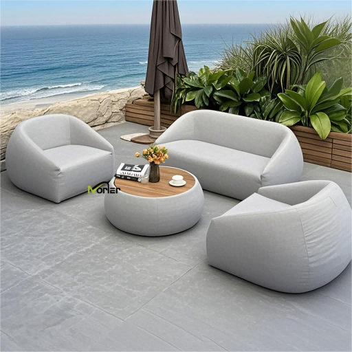 3. Polstret udendørs sofa: En doven persons komfortoplevelse, med bløde, tykke puder og hurtigttørrende materialer, der gør det behageligt at ligge eller sidde.